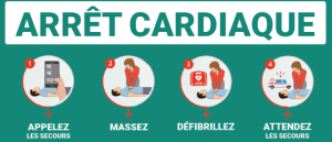Les chances de survie augmentent si la réanimation cardio-pulmonaire et la défibrillation sont entreprises dans les premières minutes qui suivent l’arrêt cardiaque.